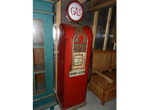 Look a Like GAS PUMP wooden cabinet with Clock Face, gas hose and lighted Globe