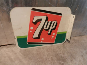 Dry Beverage signs, 7 X 24 in, 7UP 2 sided flange sign 12 X 16 in, 7UP Clocks, 20 X 28